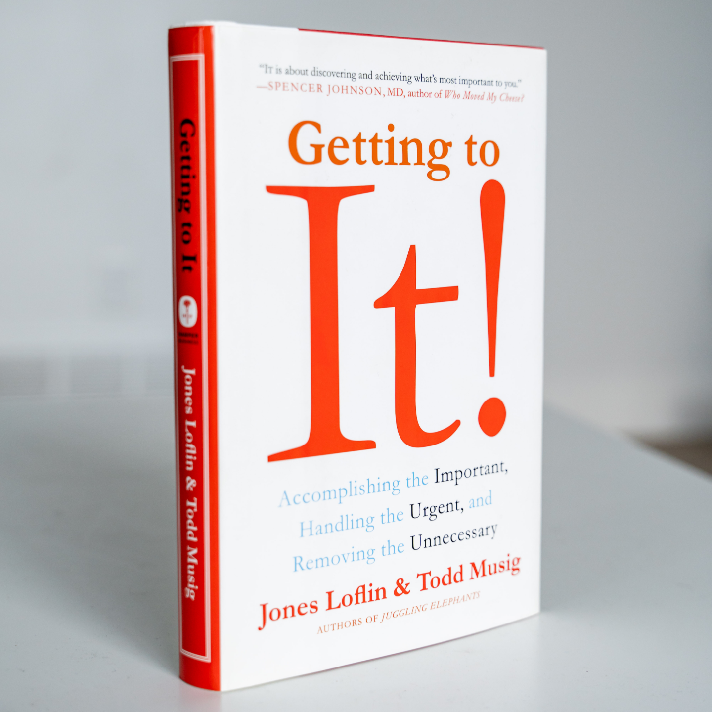 Getting to It! is aĀ practical guide to sorting through the many priorities in your life, showing you how to carefully and consistently evaluate what your IT (Important Thing) should be, and how to get IT done.